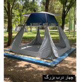 دارای چهار درب بزگ و توری دارای پنجره بر روی درب ها سقف باز و بزرگ ارتفاع بلند کف ضخیم قلاب دور چادر نوار ابریشم محافظ فنر 2/5 طول 2/5 عرض ارتفاع210 سایبان روی سقف ضدآب و ضد آفتاب رنگبندی ارسال به صورت روزانه با پست و پیک بالاترین کیفیت موجود در کشور