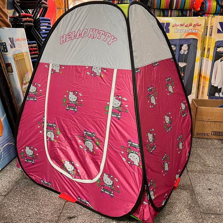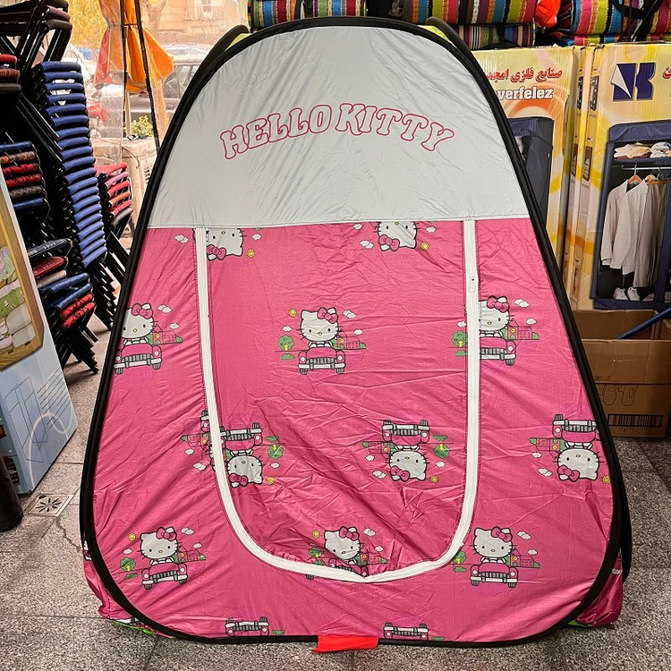 چادر کودک طرح کیتی مدل فنری سایز 2 نفره رنگ صورتی مناسب بازی و تفریح کد 3