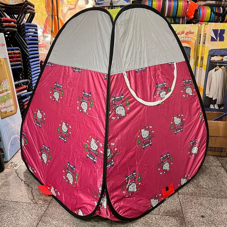 چادر بازی کودک و نوجوان مدل فنری طرح کیتی ( هلوکیتی ) سایز 116 رنگ صورتی ( 2نفره کودک ) کد3