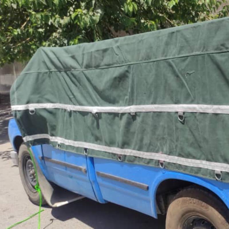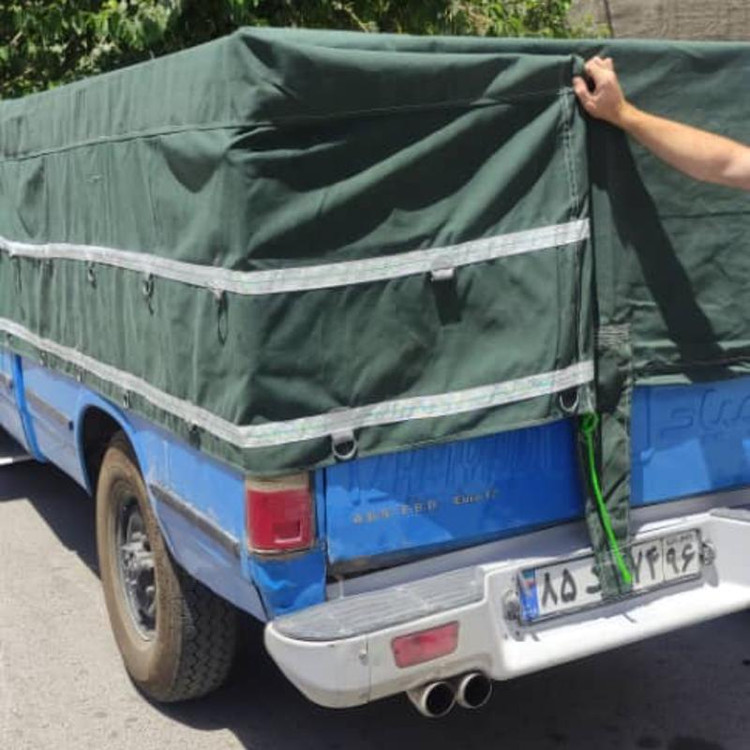 چادر ضد آب نیسان برزنتی صد در صد جلوگیری از نفوظ آب به بار شما و یا عبور از چادر، همراه با ۴ ردیف قلاب دو طرفه، دم اسبی پهن، ضد کردو خاک ، دور دوزی شده و نگهدارنده محکم برای محصولات شما،