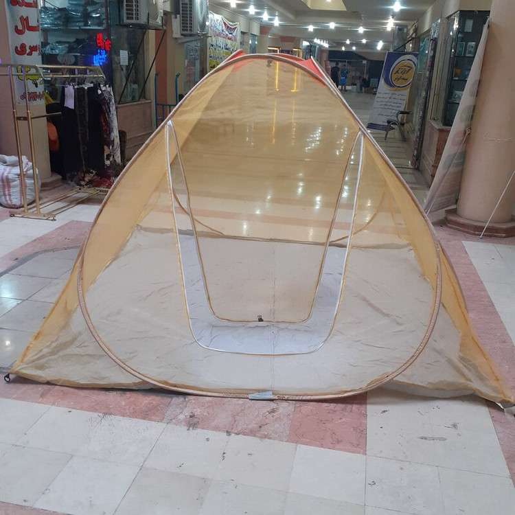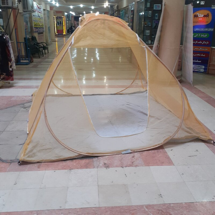 پشه بندمسافرتی فنری12نفره کف ضخیم تورحریر رنگ لیمویی ریزبافت