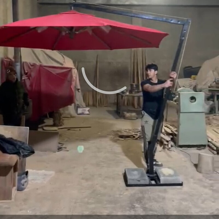 چتر بزرگ ۴ متری پایه کنار چرخشی ارتفاع ۲۳۰ سرگیر ، زیر چتر فلزی ، پارچه نانو رنگ بندی دارد ارسال با باربری بصورت پس کرایه چراغدار و چرخدار