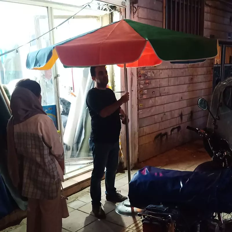 شامل لوله و چتر و پایه آهنی می باشد و برزنت مقاوم در برابر آفتاب و بسیار خنک