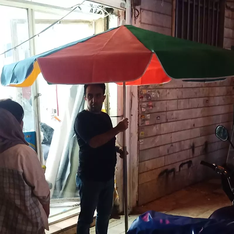 شامل لوله و چتر و پایه آهنی می باشد و برزنت مقاوم در برابر آفتاب و بسیار خنک