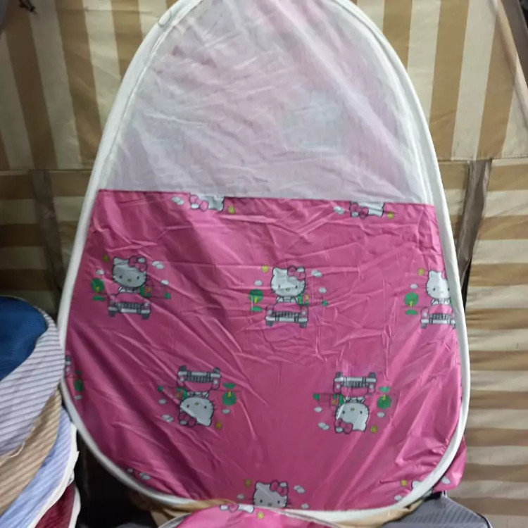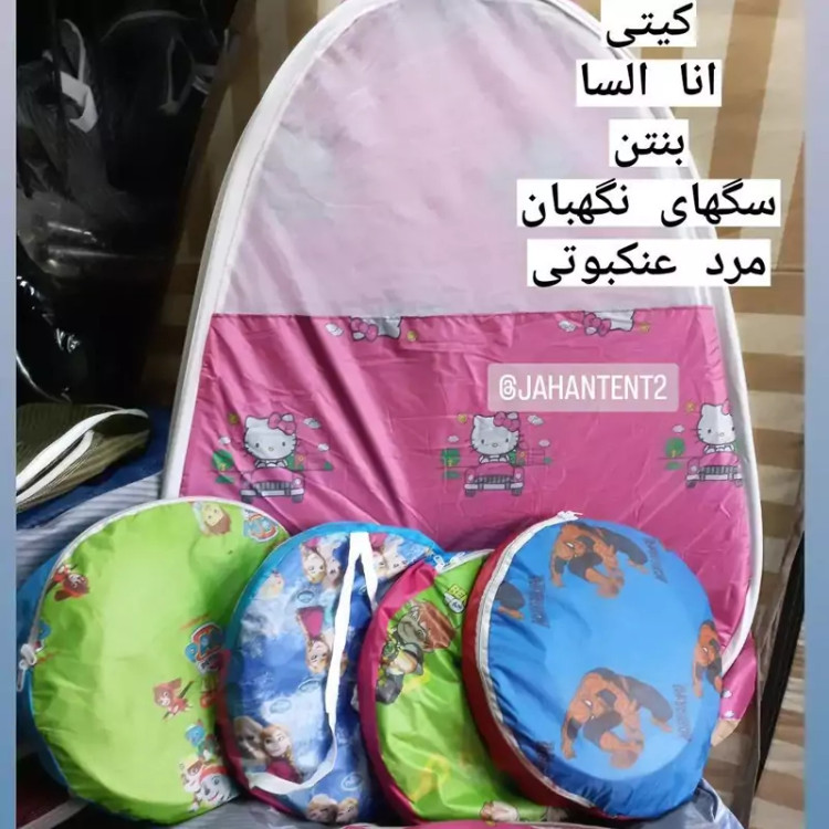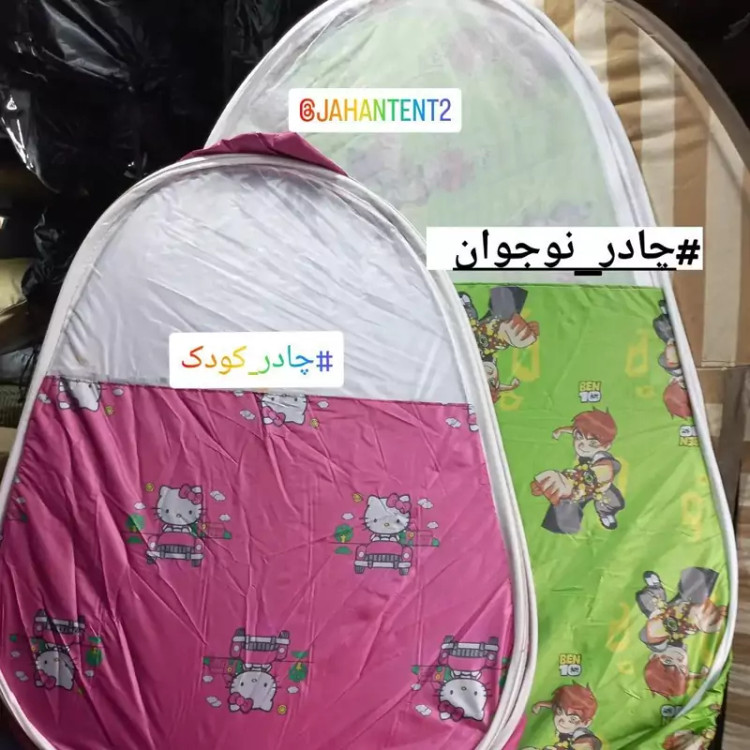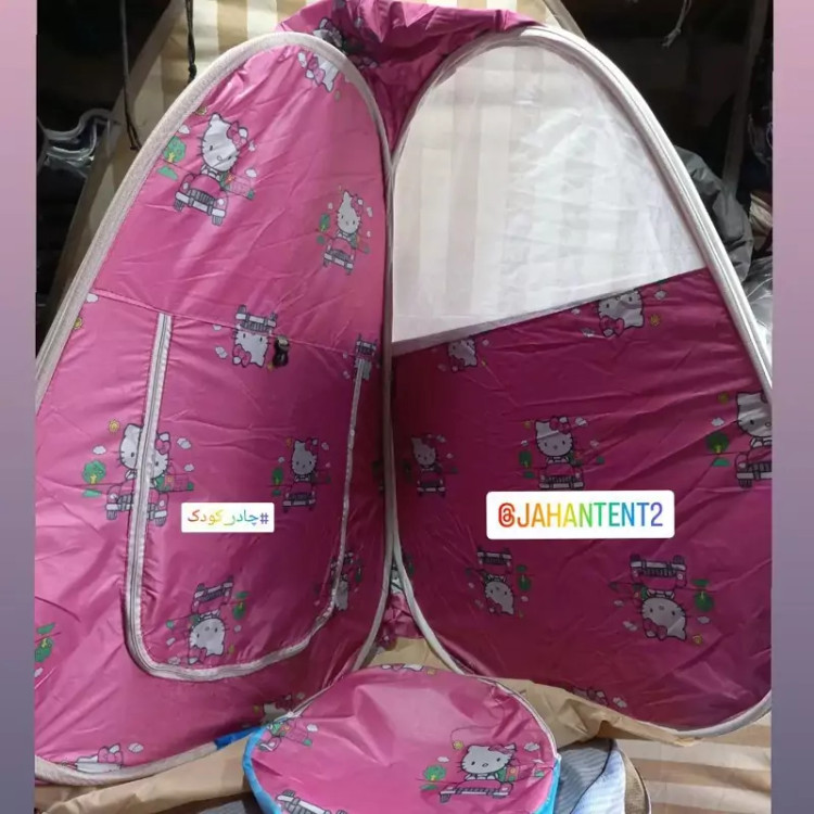 چادر کودک جنس شمعی درجه یک طرحدار نوار دور چادر ابریشمی سه طرف بالا تور یک طرف درب ورودی