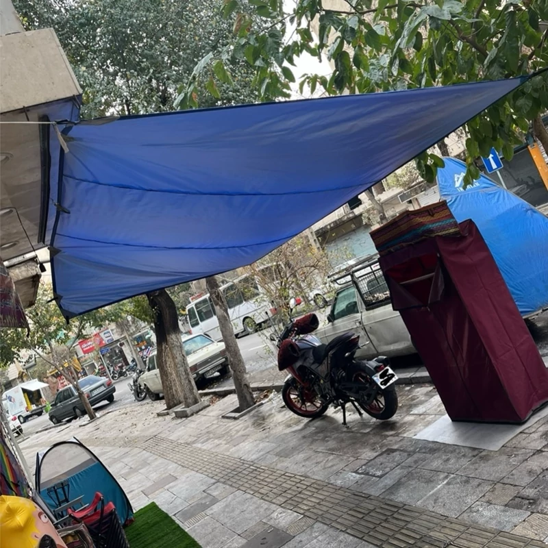 سایبان سیار سبک ضداب جنس شمعی پشت نقره تیکه دوزی قسمت قلاب ها سایز مختلف دارای کاور و بسیار کم جا وزن بین 400 گرم تا یک کیلوگرم بستگی به سایز دور تا دور دارای قلاب جهت بستن هم میتونین داخل طبیعت به درخت ببندین هم میتونین تو کویر به دوتا ماشین ببندین هم میتونین داخل حیاط منزل استفاده کنید هم میتونین به عنوان باران گیر فروشگاه و یا برای بساط استفاده کنید در هر مکانی که بخواین قابل استفادس رنگبندی هم داره