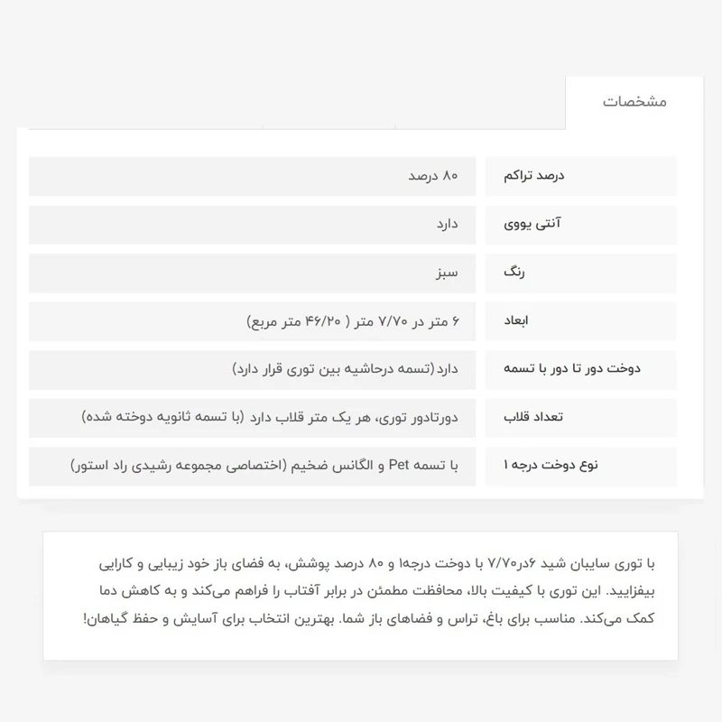 توری سایبان شید،6در7.70،دوخت درجه1، 80درصد