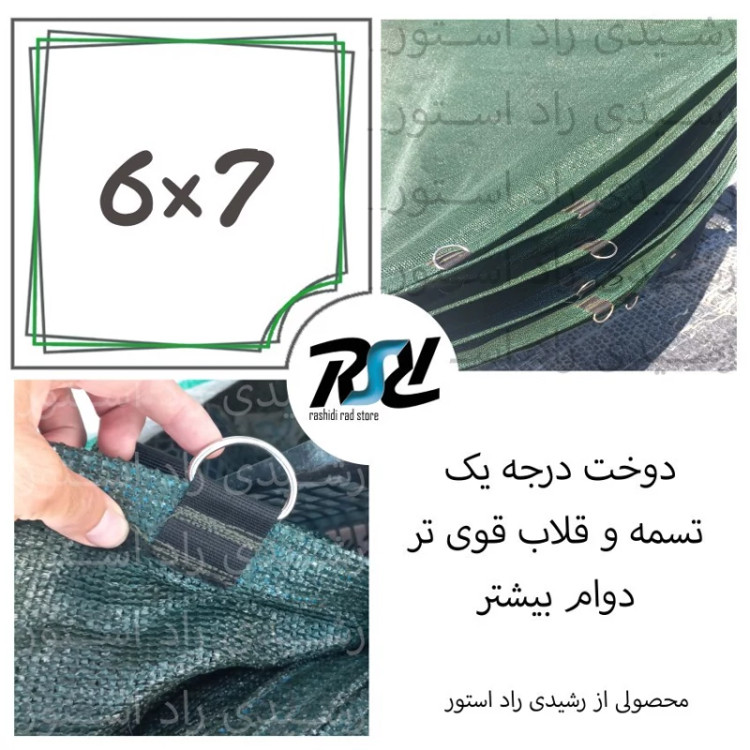 توری شید، 6 در7، 80 درصد انتی یووی دار میباشد که از اشعه خطرناک خورشید جلوگیری میکند، دوخت درجه 1 (منظور تسمه و دوخت بسیار قویتر میباشد) ، تسمه محکم دور کار و هر متر یک قلاب با تسمه ثانویه دوخت خورده، این محصول اماده هست. این ابعاد اماده و بسته بندی شده هست، زمان تحویل به پست، بسته به زمان ثبت سفارش، بین 1 تا 3 روز میباشد.