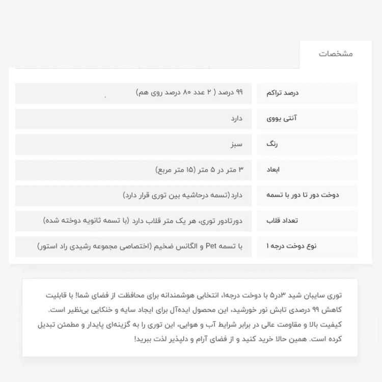 توری سایبان شید 3در5، 99 درصد پلاس