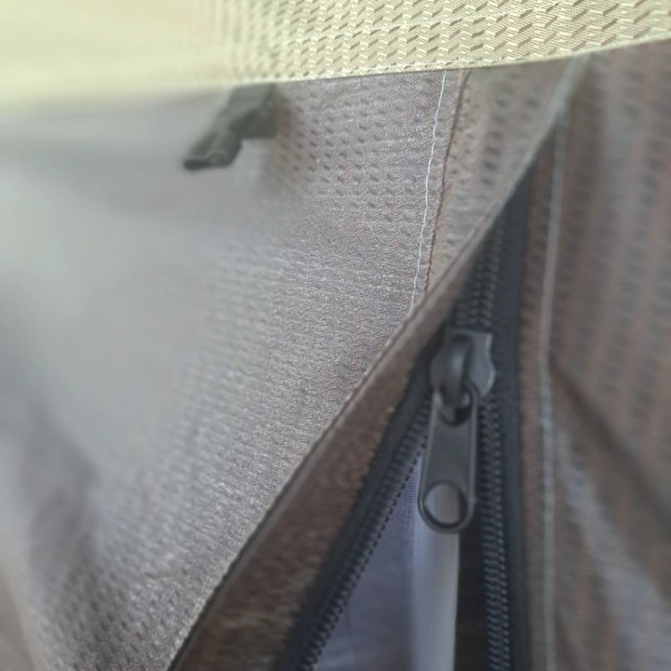 چادر از جنس برزنت برنو دو لایه و ضد آب میباشد و ضخامت قابل قبولی دارد